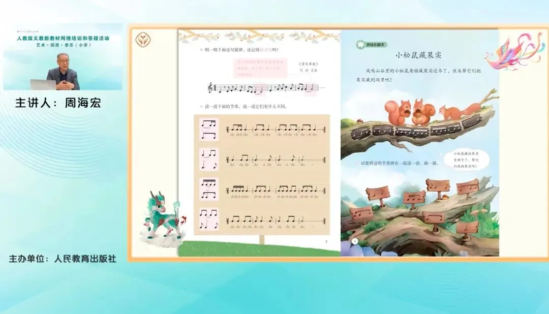 本次培训主讲人周海宏教授,围绕艺术·音乐(小学)学科的新修订教材展开,重点解析了下册教材的编写思路、主要内容与教学实施建议,并对上册使用过程中的常见问题进行了集中答疑。培训内容既注重理论引领,又紧扣教学实际,帮助教师准确把握教材意图,提升课堂实效。