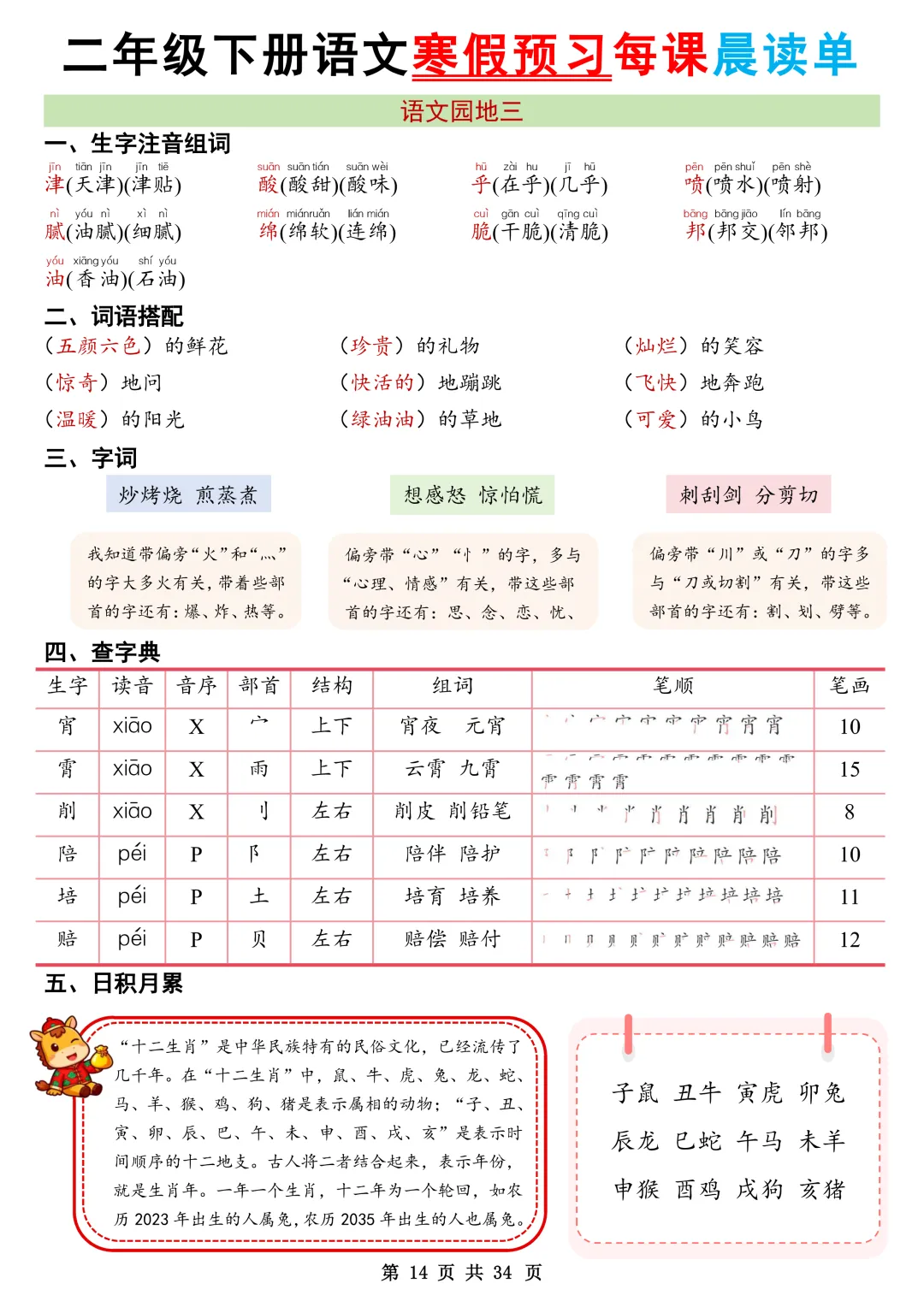 寒假预习|小学语文二年级下册电子课本|语文园地《语文园地三》课文朗读(仅供参考)