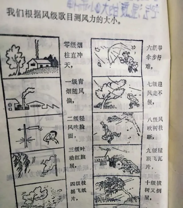 这个尖头带片的家伙叫风向标,往哪儿指风就从哪儿来,配合课本里的风级歌一起用,零级烟柱直冲天,六级撑伞走路难,九级屋顶飞瓦片,背到这句我妈在旁边笑,说别见风就跑,先看树梢摇不摇,再看旗子扯不扯。