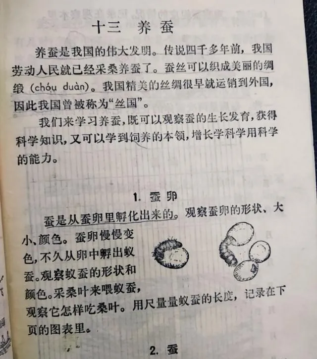 这组箭头串起来的照片叫蚕的一生,从卵到小青蚕再到吐丝成茧,塑料筐里铺桑叶,咔嚓咔嚓的嚼叶声像下小雨,喂到后期要“上簇”,我把旧鸡毛掸子剪了做简易簇架,被奶奶念叨半天,最后看着一只只白茧挂上去,心里美得不行。