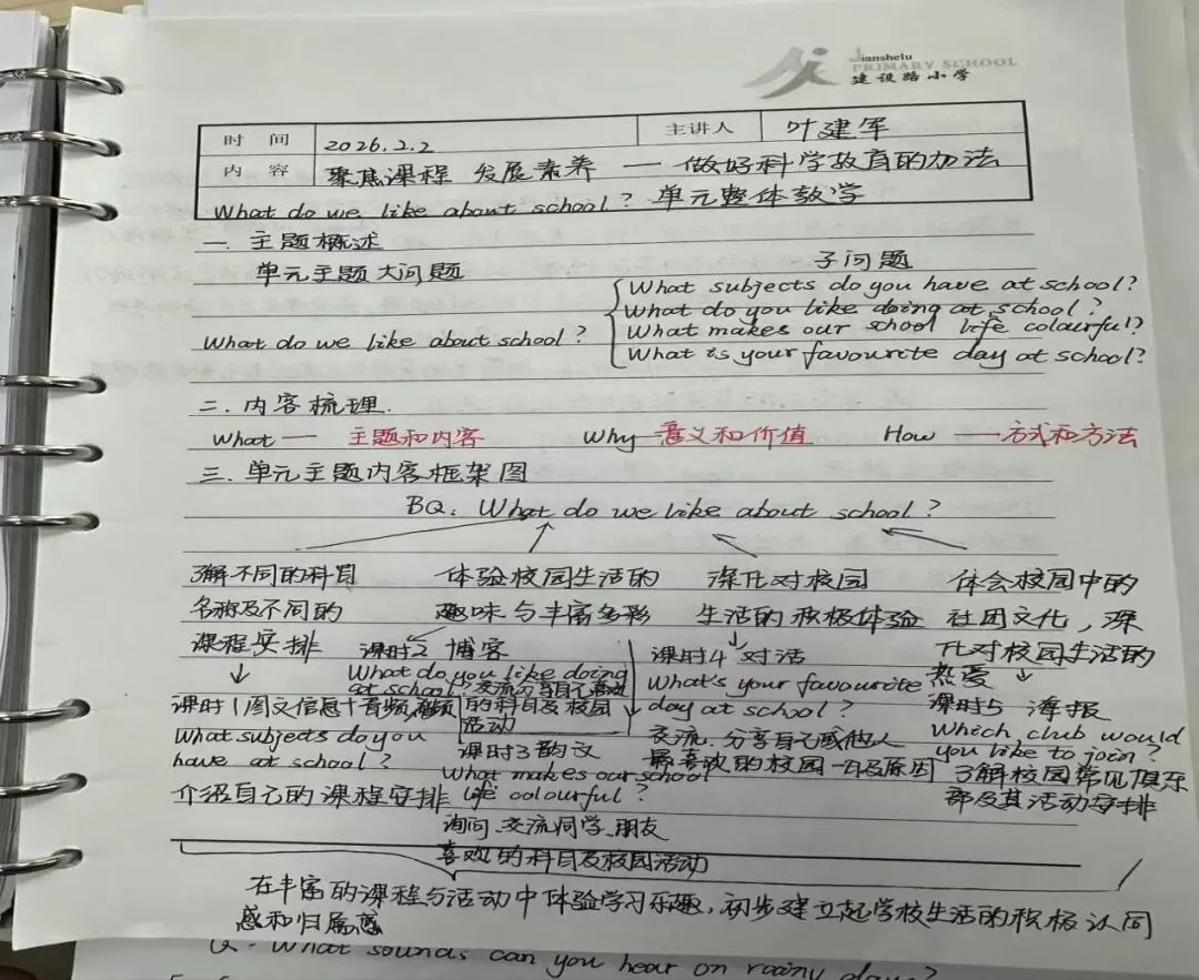 下午14时,培训聚焦《英语 四年级下册》4BU2 “What do we like about school?”,深入剖析单元整体教学设计思路与课堂实施要点。专家强调,要以学生核心素养发展为导向,通过高质量教研活动推动教学方式变革,让英语课堂既注重语言知识的习得,更关注学生探究能力、合作意识与人文素养的培育。老师们结合课前预习的教材内容,积极参与互动研讨,分享各自的教学设想与实践困惑,在专业引领下优化教学策略,为新学期高效课堂的构建奠定了坚实基础。