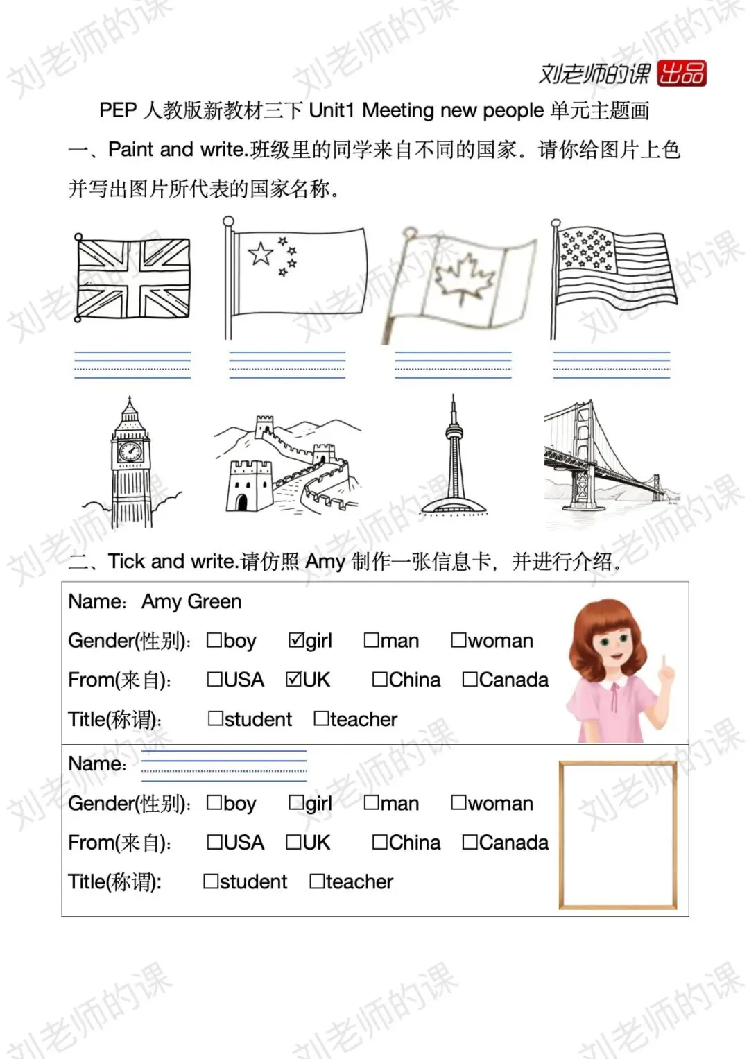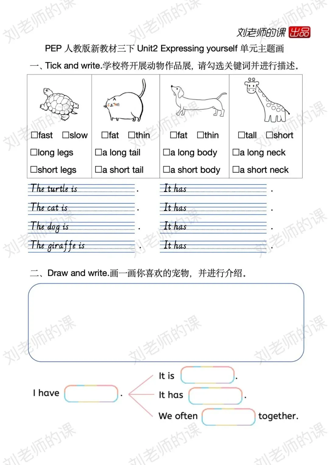 PEP人教版下册单元主题画作业纸