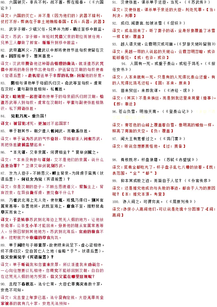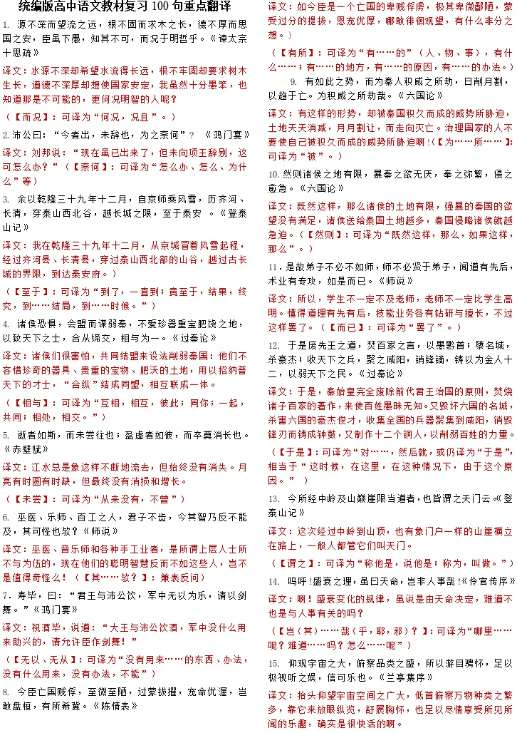 >统编版高中语文一轮教材复习落实100句重点翻译
