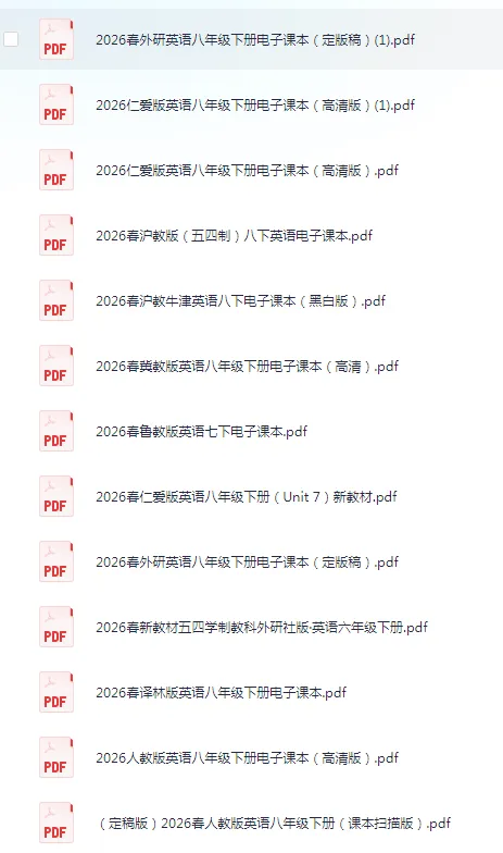我用夸克网盘分享了「2026春沪教版(五四制)八下英语电子课本.pdf」,点击链接即可保存。打开「夸克APP」在线查看,支持多种文档格式转换。