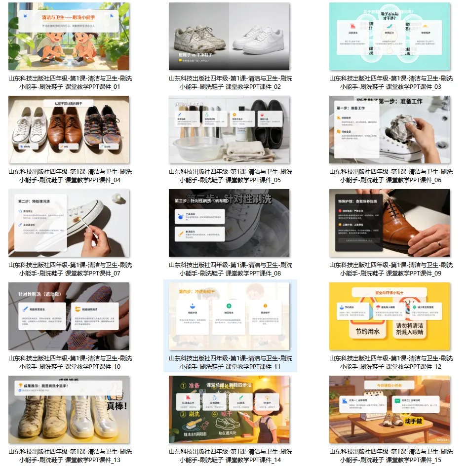 本课选自山东科学技术出版社四年级综合实践活动“清洁与卫生”主题单元,是培养学生生活自理能力的核心内容。教材以“刷洗鞋子”为实践载体,紧扣四年级学生认知特点,从生活实际出发,既注重基础技能的传授,又强调劳动观念和环保意识的渗透。通过学习不同材质鞋子的刷洗方法,帮助学生将劳动知识转化为生活实践能力,为养成良好的卫生习惯和劳动习惯奠定基础。