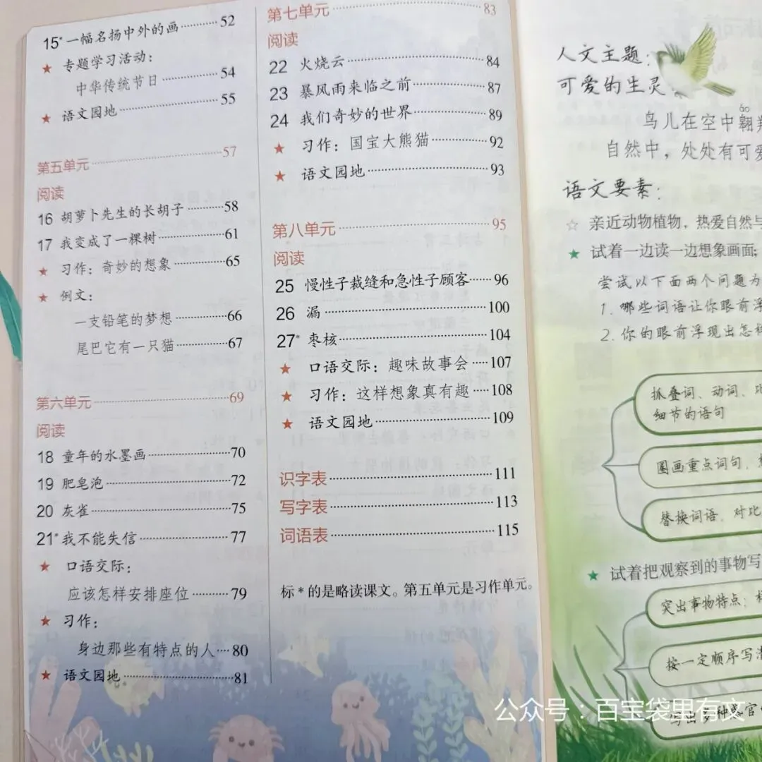 还有语文园地、口语交际、习作,三大专题内容!