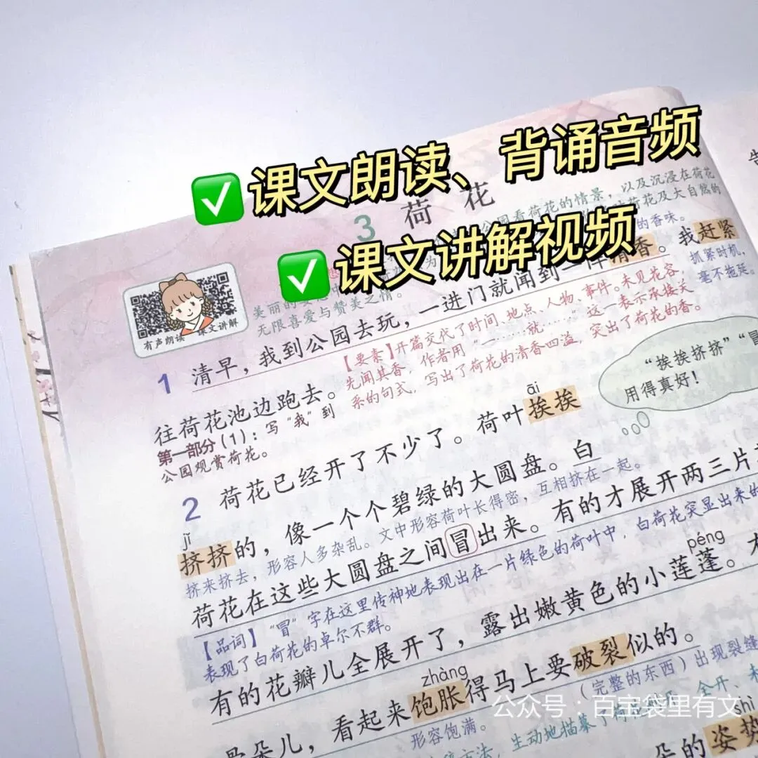 每一篇都有原文朗读音频、语文老师解读视频
