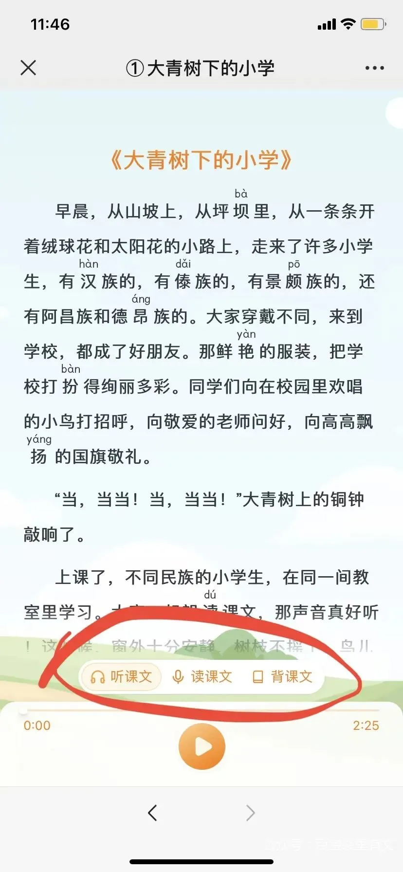 还可以听课文朗读、跟读课文、背诵课文