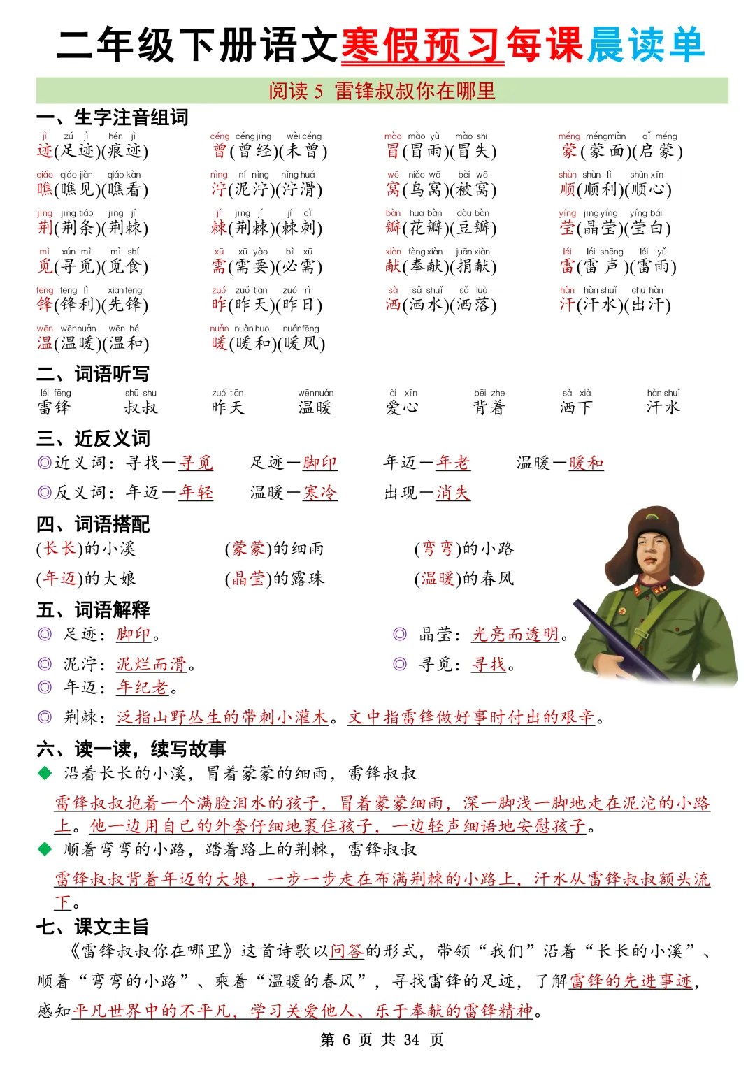 寒假预习|小学语文二年级下册电子课本|第5课《雷锋叔叔,你在哪里》课文朗读(仅供参考)