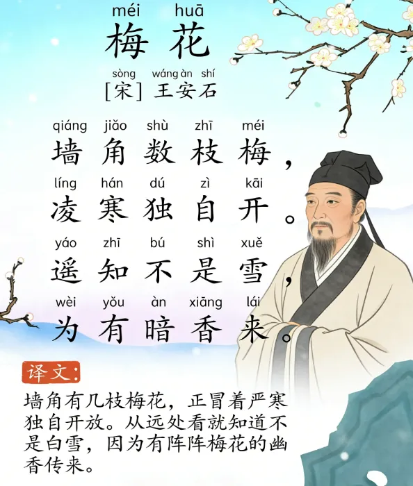 此刻窗外,冬意正浓。不妨泡一杯热茶,再读一遍《梅花》。你会发现,那枝开在墙角的梅花,从未远离。它开在我们每一次面对困境的坚守里,开在每一个不为人知的努力里,开在中国人代代相传的风骨里。