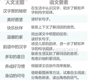 识字单元。一年级下学期,学生识字开始以合体字为主,其中包含着大量的形声字,所以这两个识字单元它的学习重点分别是初步了解形声字的构字规律和进一步了解形声字的构字规律。渗透了系统的批量的意识。那么六个阅读单元语文要素的安排也都呈现在这里了,后面我们还会具体讲到。