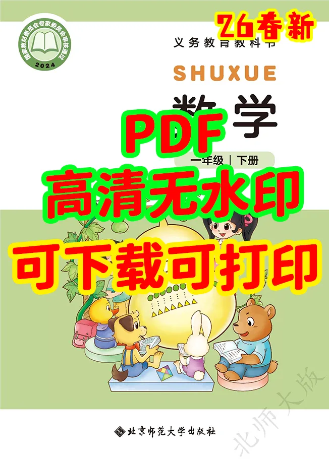 #26年春新小学北师大版数学一年级下册电子课本教材pdf高清无水印电子版可打印下载预习复习备考教学学习资料一年级二年级三年级四年级五年级六年级上册下册