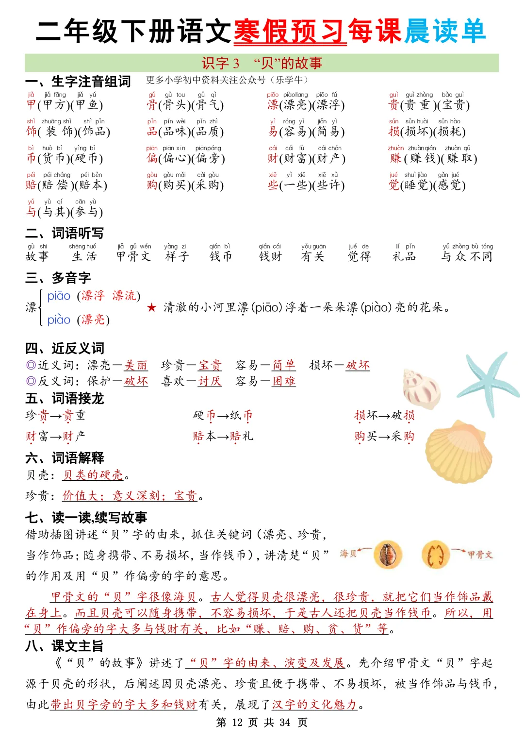 >寒假预习|小学语文二年级下册电子课本|识字3《贝的故事》课文朗读(仅供参考)