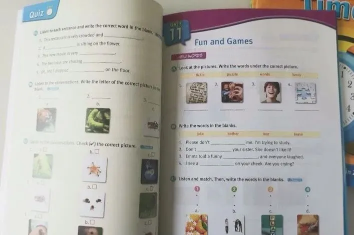 3. 在听力过程中,书中遵循先听后说的学习规律,每册书分20个单元,60种不同场景的话题,非常贴合孩子们的年龄:涉及有宠物,音乐,游戏,超/市购物,制作食品,制作面、具,度假,旅游,做家务,搭建树屋,运动,上学,保护动物,环保等丰富宽泛的话题。将高频词汇和句型结构完/美结合。同时增加引导说与写的练习。词汇非常广泛,实用性强,词汇积累不枯燥乏味。