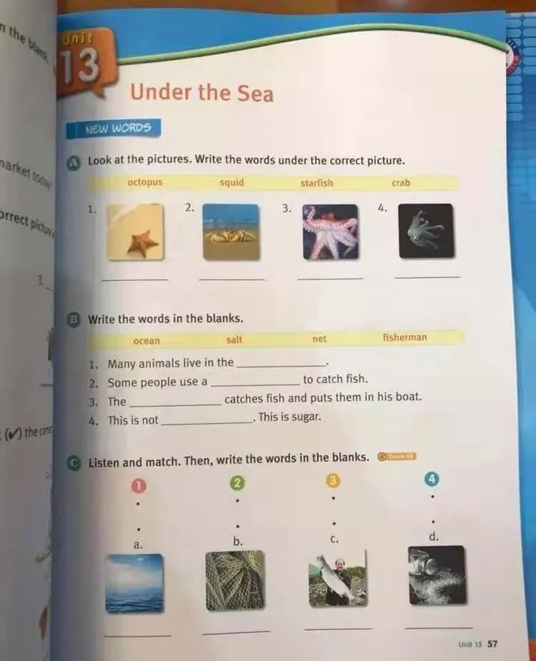 每一个单元都有对应的单词+图片热身,供大家讨论,引起孩子的好奇心。