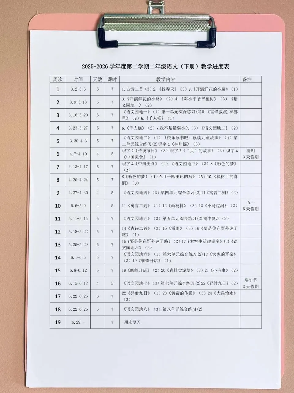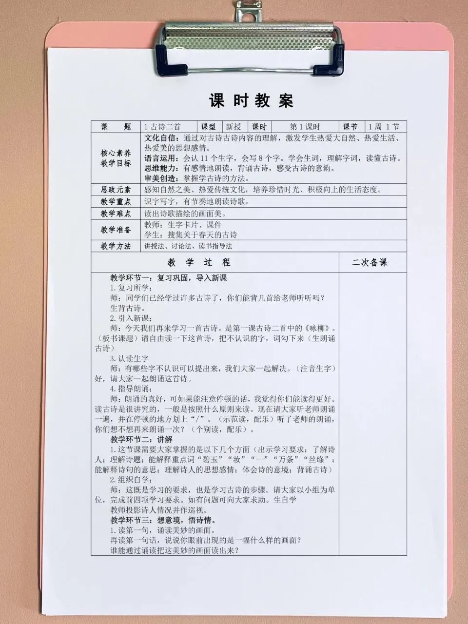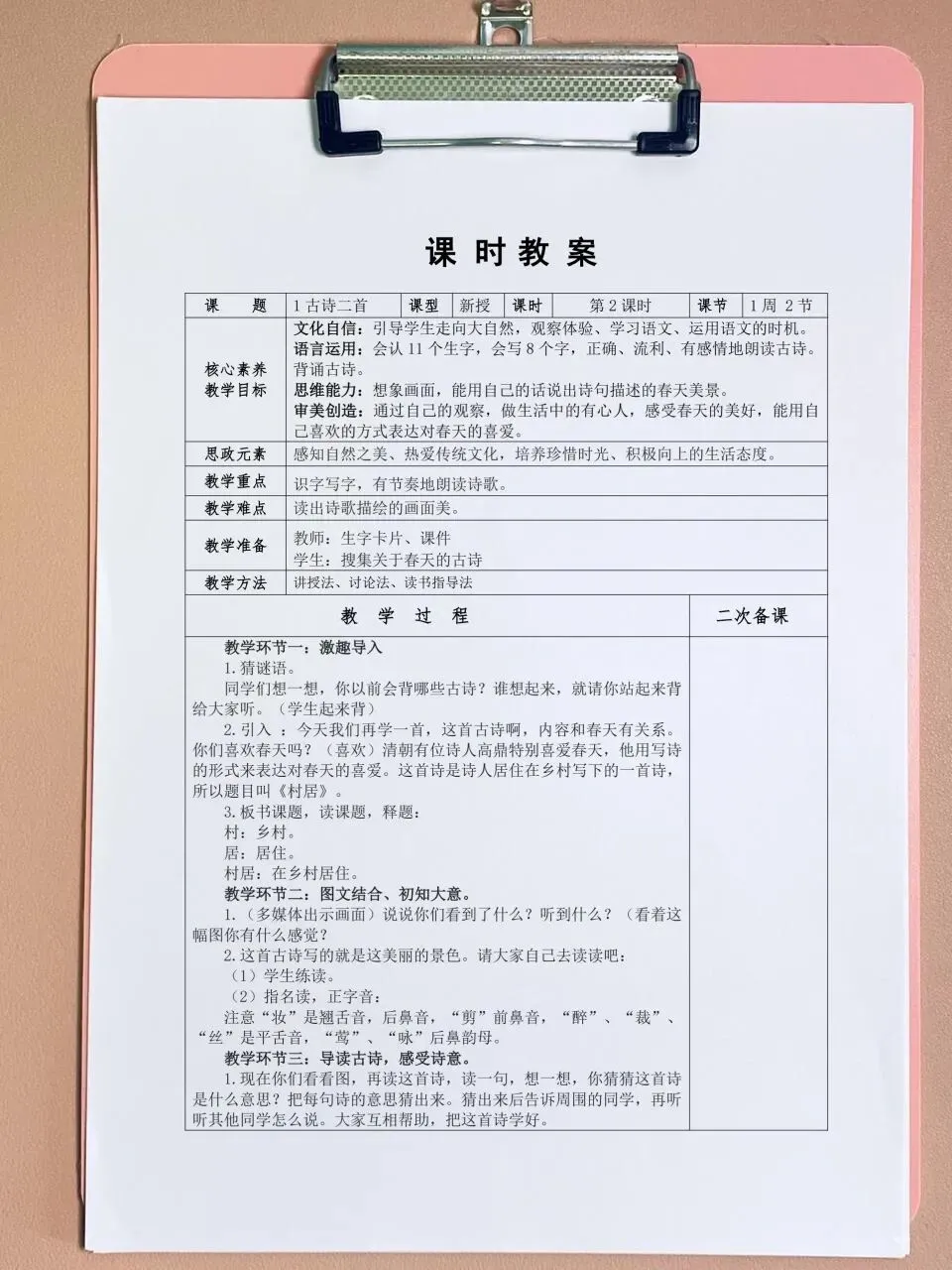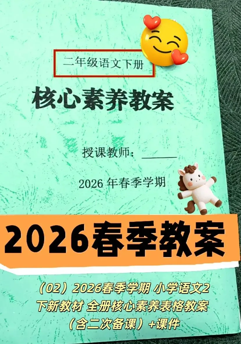 >2026春季学期 小学语文2下新教材 全册核心素养表格教案(含二次备课)+课件