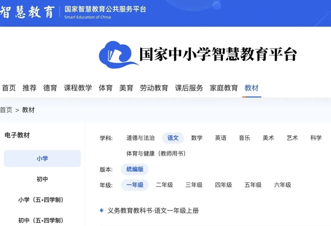 要给大家重点推荐的平台是——国家中小学智慧教育平台(https://www.zxx.edu.cn/),从小学到高中各个年级所需的电子版教材,这里基本都能找到。