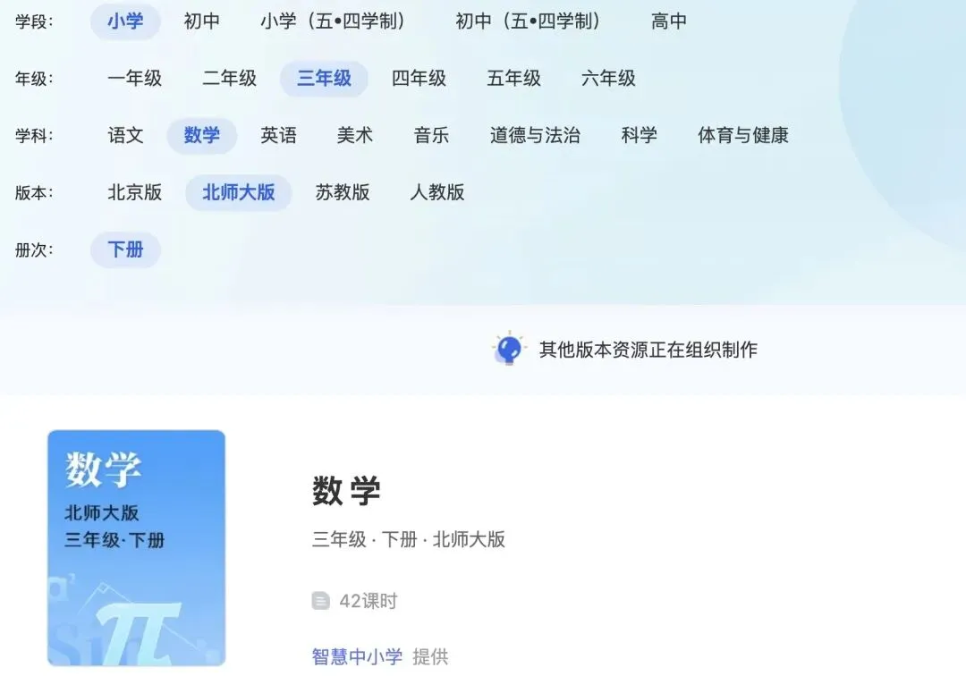 也就是说,相比家长群里五花八门的各种网络链接,国家中小学智慧教育平台是官方认证的,不但版本覆盖面广,内容质量也很有保障,而且全是最新版本。