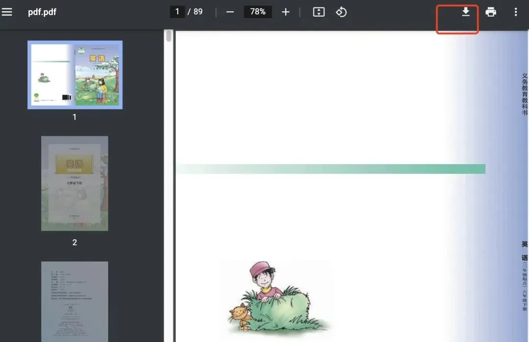 大家使用时还会发现,平台不能直接下载电子版教材,如果要下载,这个教给大家一个小妙招:将网址链接最后一部分的“tchMaterial”改成“elecedu”,这样再进入页面,然后点击教材链接,打开就是PDF文件,点击保存按钮,就能下载了。
