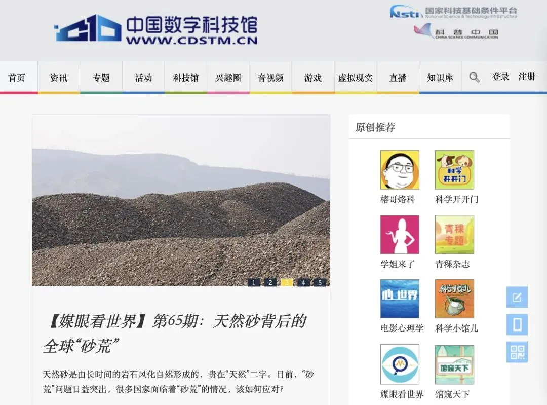 2005年12月,中国数字科技馆(www.cdstm.cn)由中国科协、教育部、中国科学院共同设立启动,是国家科技基础条件平台项目之一。成都商报教育发布记者体验发现,该平台汇集了图片、音频、视频等数字化科普资源,有关于清明节气常识、蚊虫叮咬原因、坦克装备等热点类知识普及,可谓家长孩子皆宜。