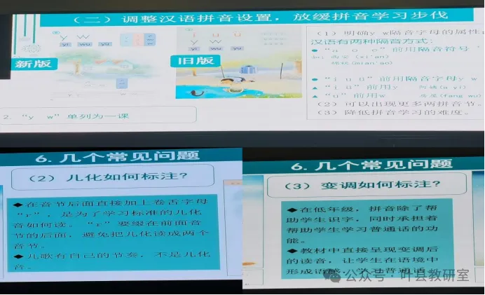 另外,袁老师明确了语文教学中有争议的几个问题:“Y 、W属于声母吗?儿化音如何标注?变调如何标注?”这些都为老师们提供了一个标准,让老师们的教学工作有据可依。