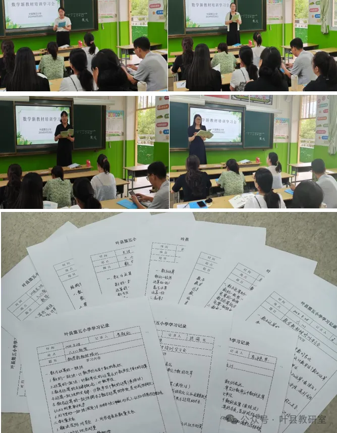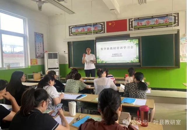 为落实《义务教育数学课程标准(2022年版)》相关要求,更有效地帮助教师落实新课标理念,理解新教材的编写体系、特点和内容,更好地研究新教材、用好新教材,2024年8月28日下午叶县第五小学数学教研组开展了小学数学新教材培训学习会。