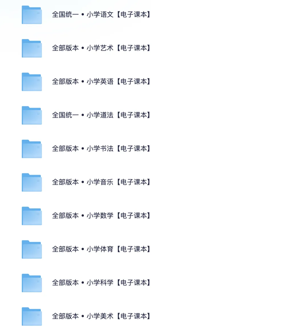各位家长和老师看过来!这份超全的小学电子课本合集,涵盖语文、数学、英语、科学、道法、音乐、美术等所有学科,不仅有全国统一的人教版,还包含北师大、苏教、西师、沪教等十余种地方版本,从一年级到六年级全套齐全。