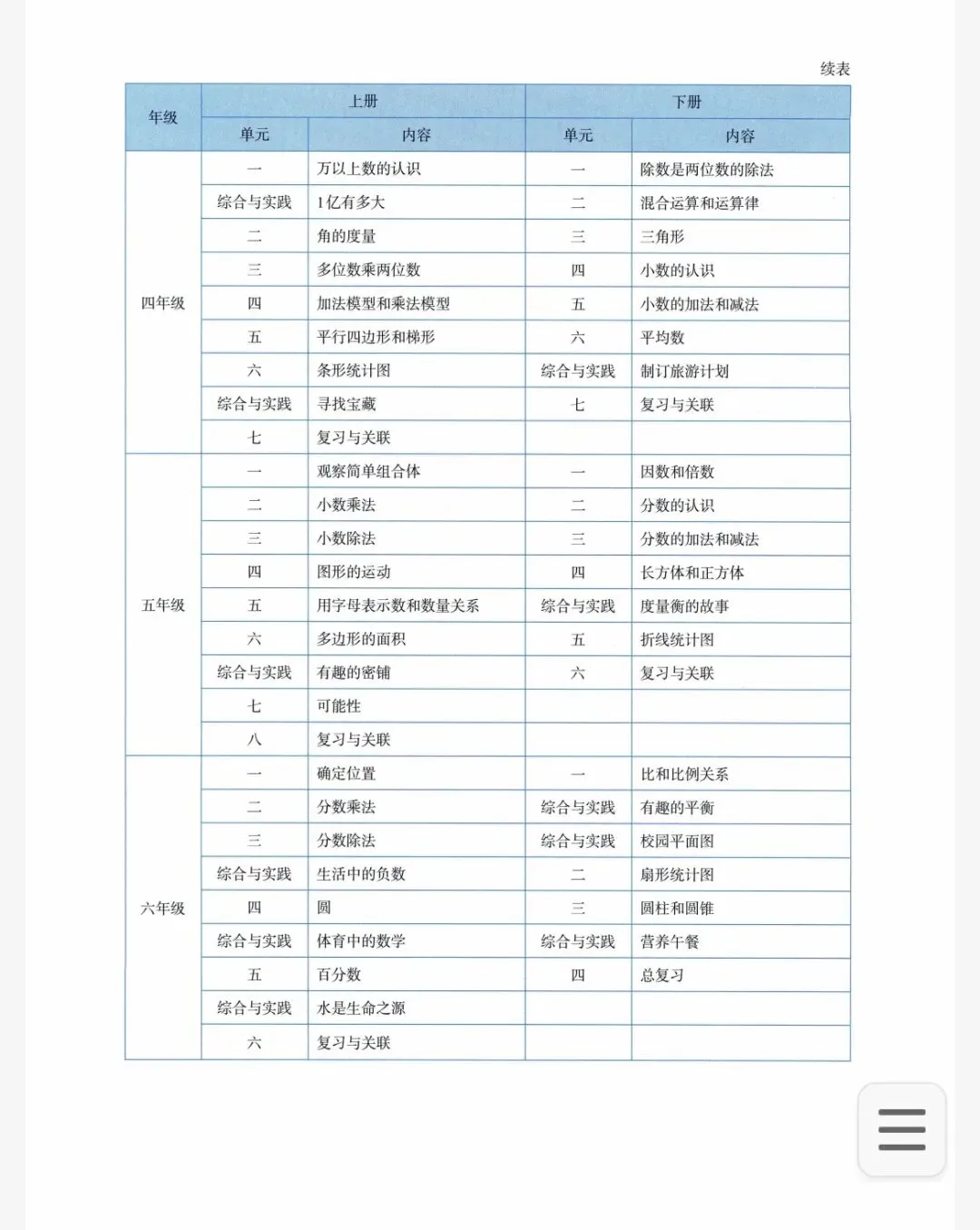 今日分享:2026春新版小学数学1-6年级教材教学内容编排结构表(目录)