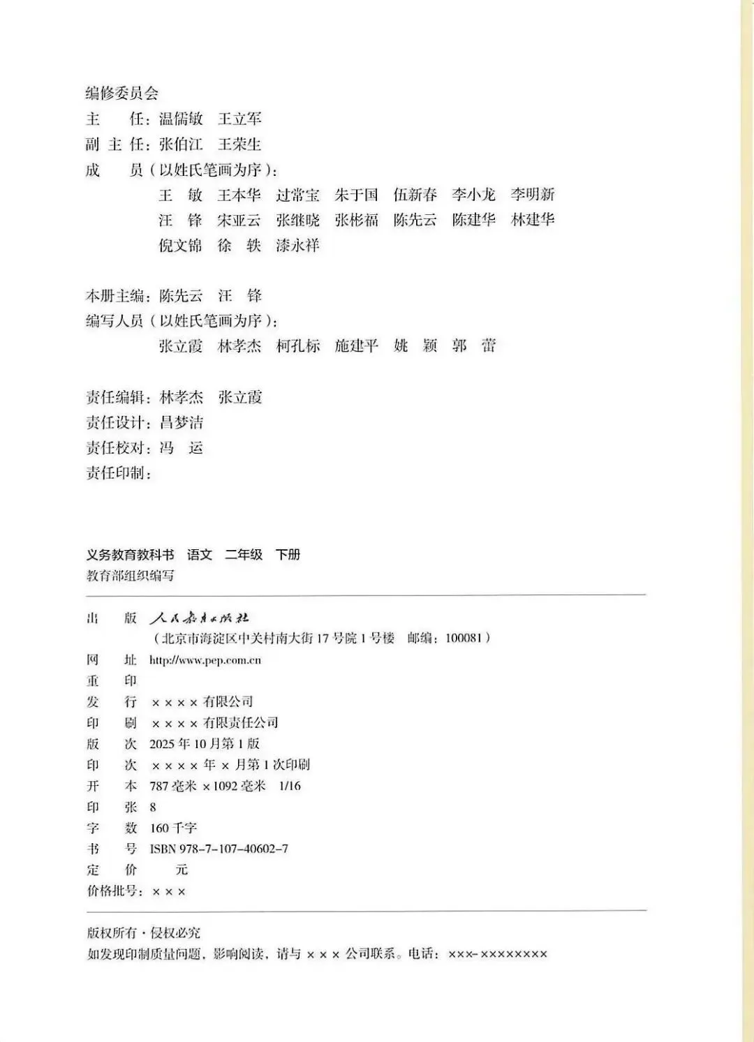 26年春小学语文部编版二年级下册新教材(附下载链接)