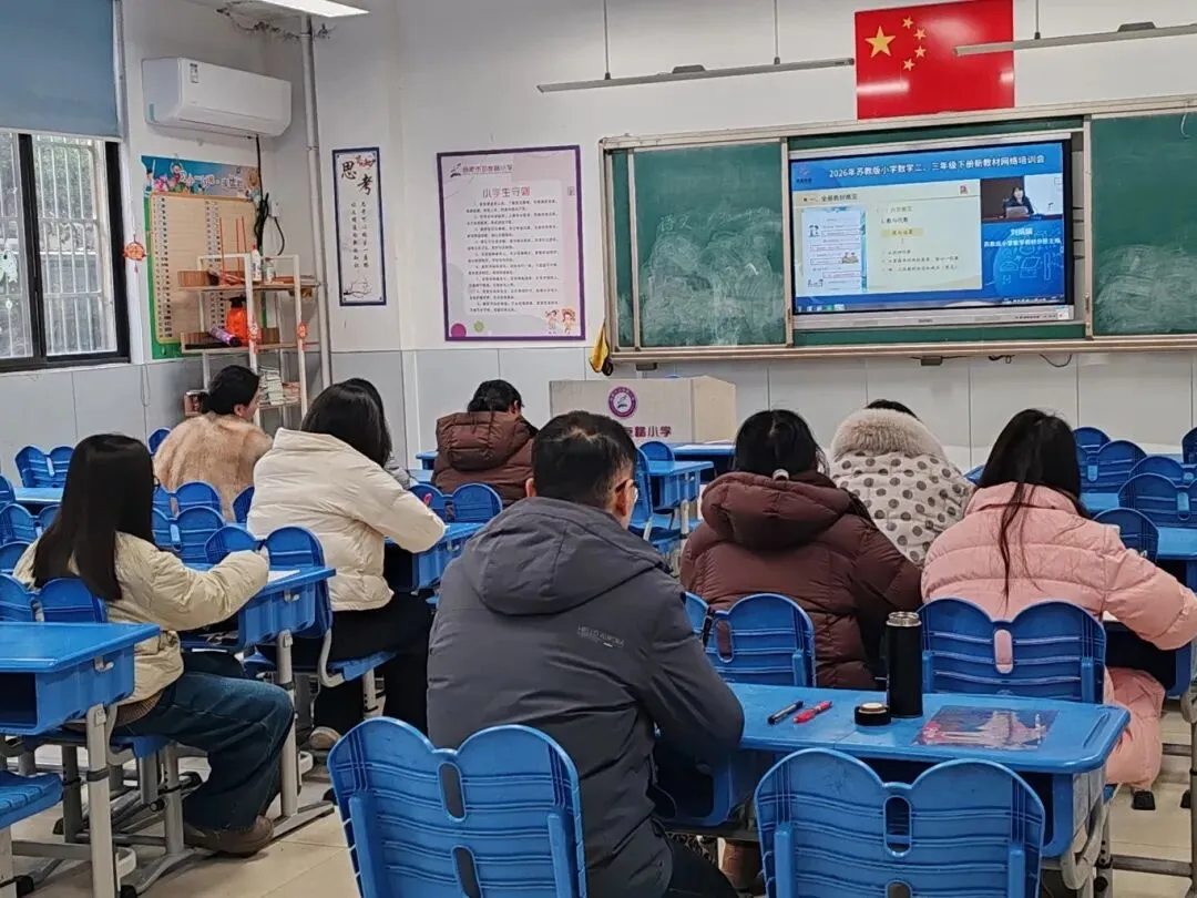 为深入领会苏教版小学数学二、三年级下册新教材编写理念,精准落实新课标教学要求,提升教师教材解读与课堂教学实践能力,2026年2月2日至3日,合肥市习友路小学在副校长朱军的组织下,于一(1)班教室集中数学教师,参与凤凰教育主办的苏教版小学数学新教材网络培训会,以线下集中研学的形式,共研教材精髓,共促专业成长。