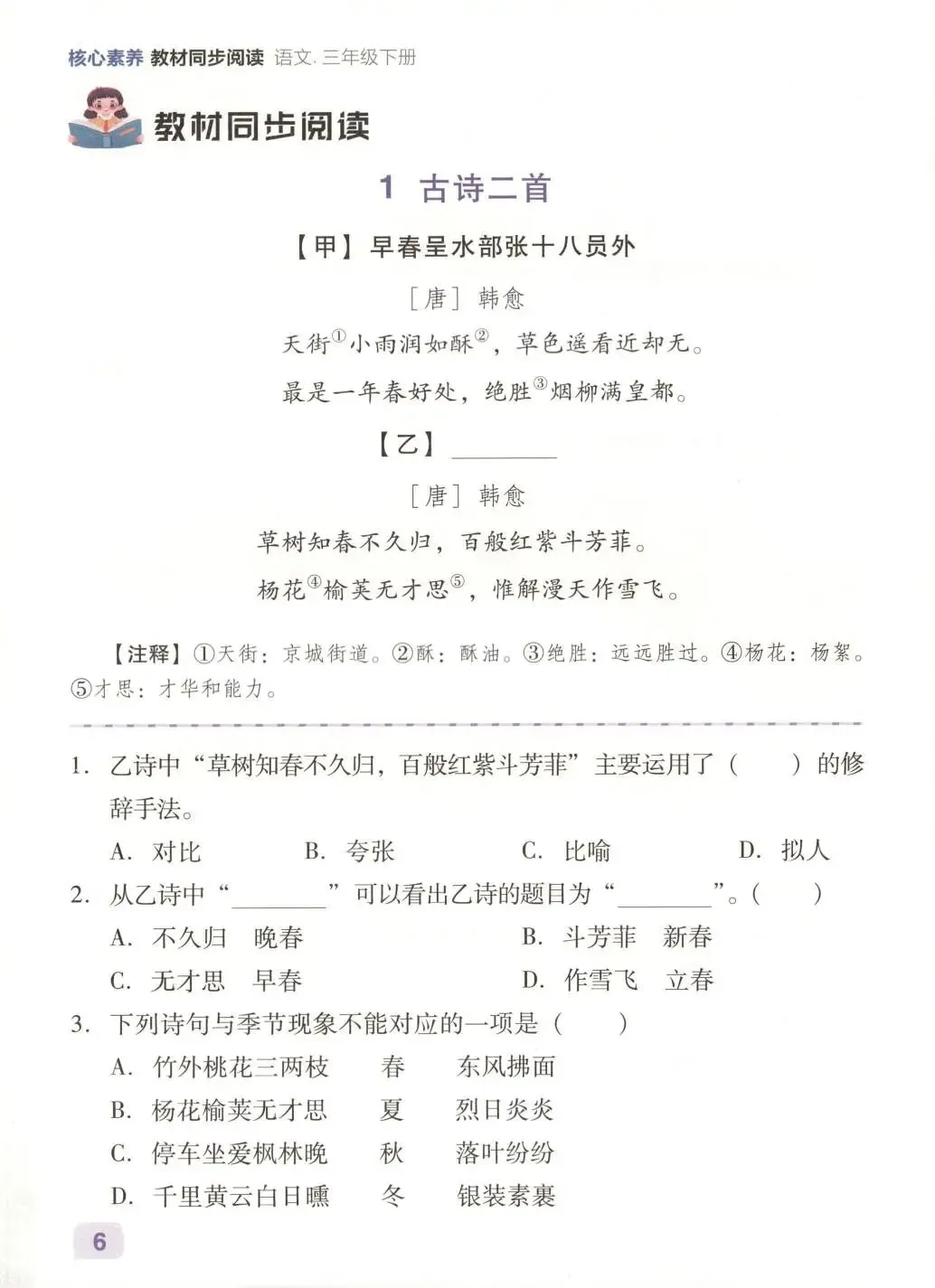 今天分享的是:“小学语文1-6年级下册《核心素养教材同步阅读理解训练》”。