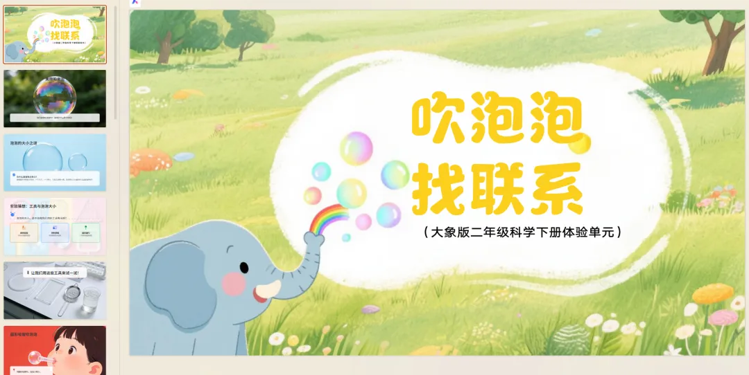 本课时选自大象版二年级科学下册体验单元,是学生接触科学探究的入门课。教材以“吹泡泡”这一贴近儿童生活的活动为载体,引导学生发现泡泡大小与多种因素的联系,渗透“猜想—实验—结论”的科学探究流程。教材设计了问题猜想、探究实验、反思评价、应用迁移等环节,注重培养学生的观察能力、动手操作能力和合作交流意识,为后续单元的科学探究奠定基础。