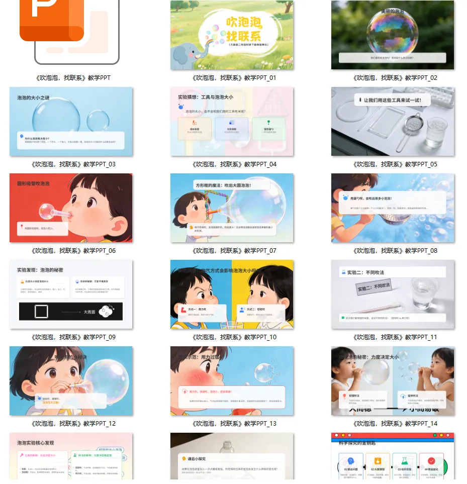 1教师小结:“通过实验,我们发现泡泡的大小和多个因素有关,这说明世界上很多事物之间都是相互联系的。科学探究就是这样,从猜想开始,通过实验验证,才能找到事物之间的联系。”