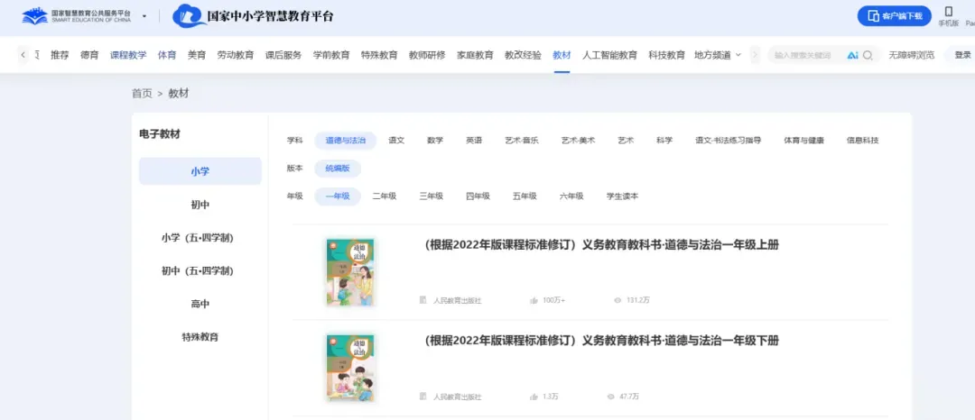 方式一:复制链接https://basic.smartedu.cn/ 打开“国家中小学智慧教育平台”,点击“教材”栏目;找到需要的课本点击即可预览