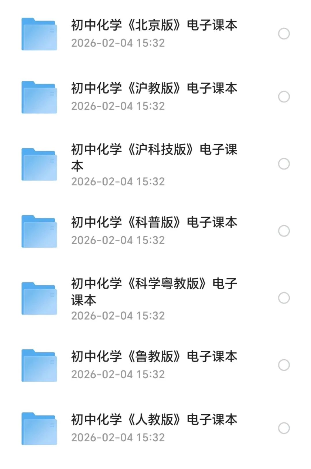 为帮助初中生顺利适应新学期化学教材,我们特别整理了2026年初中化学全版本全套电子课本