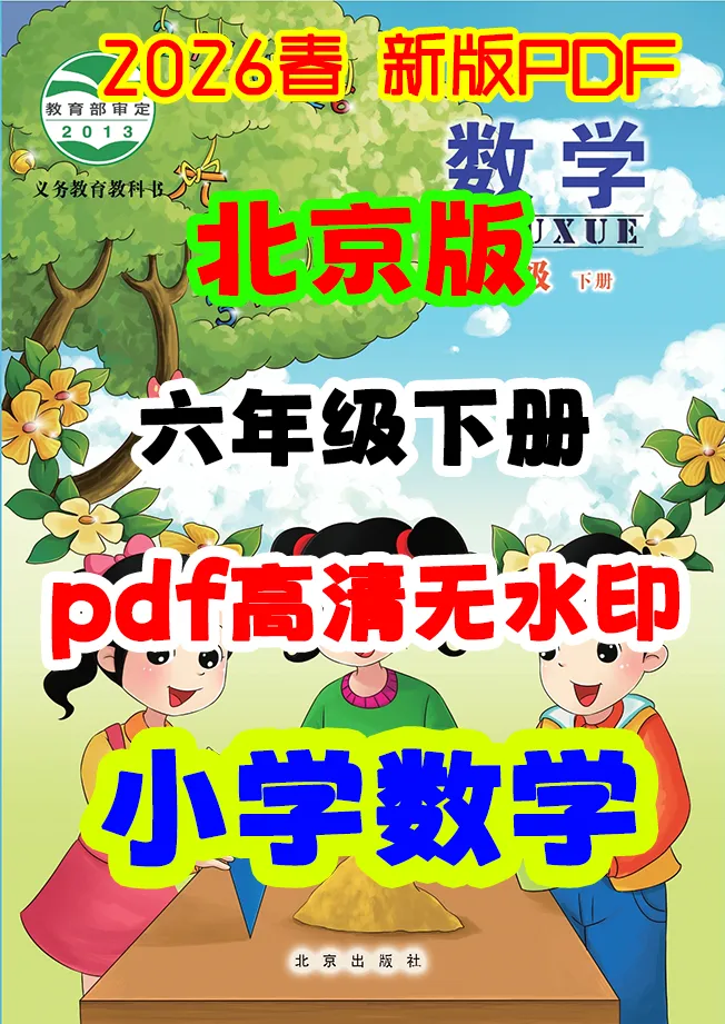 #26年春新小学数学六年级下册北京版电子课本教材pdf高清无水印电子版可下载打印预习复习备考教学学习专用一年级二年级三年级四年级五年级六年级上册下册