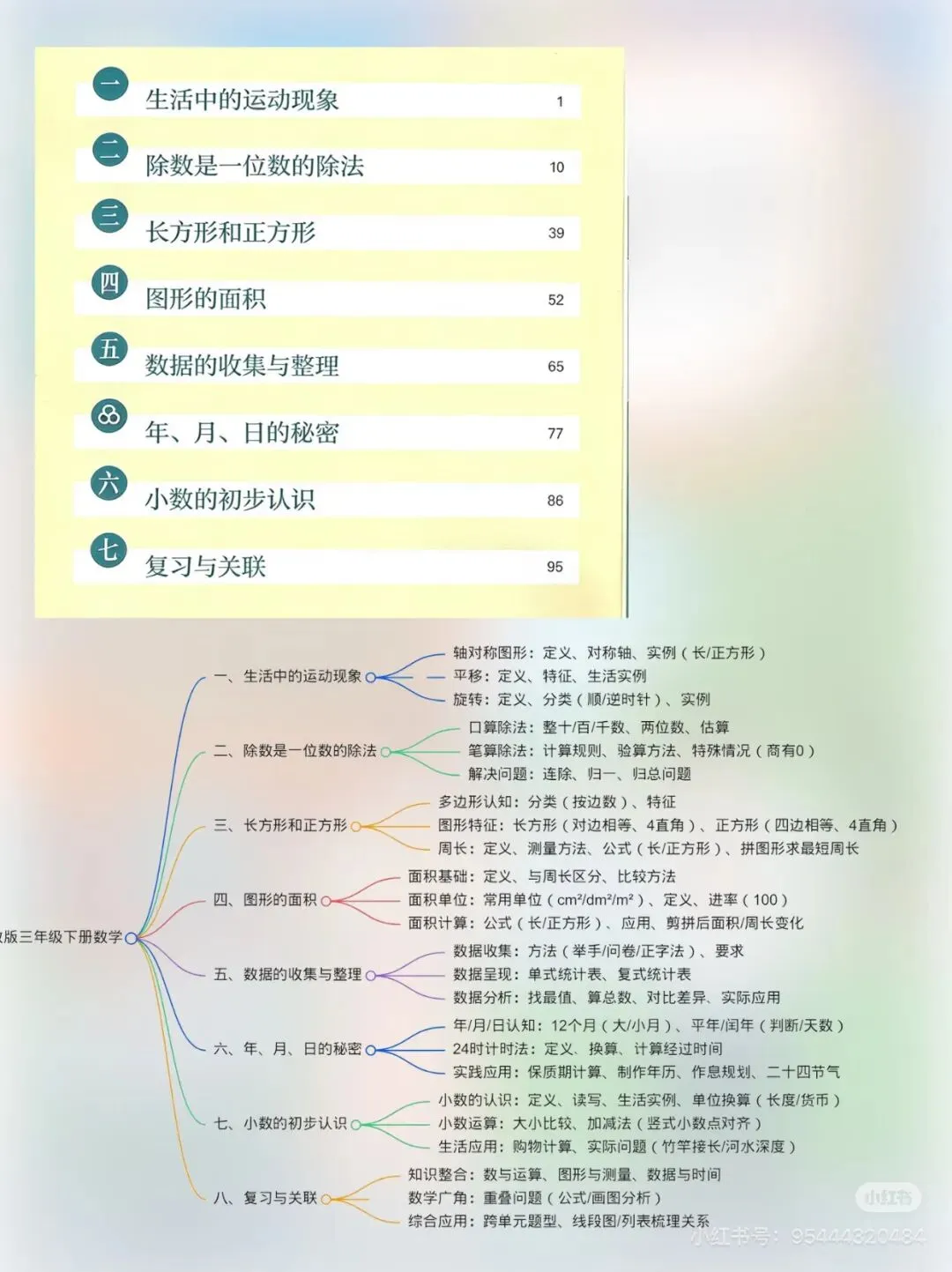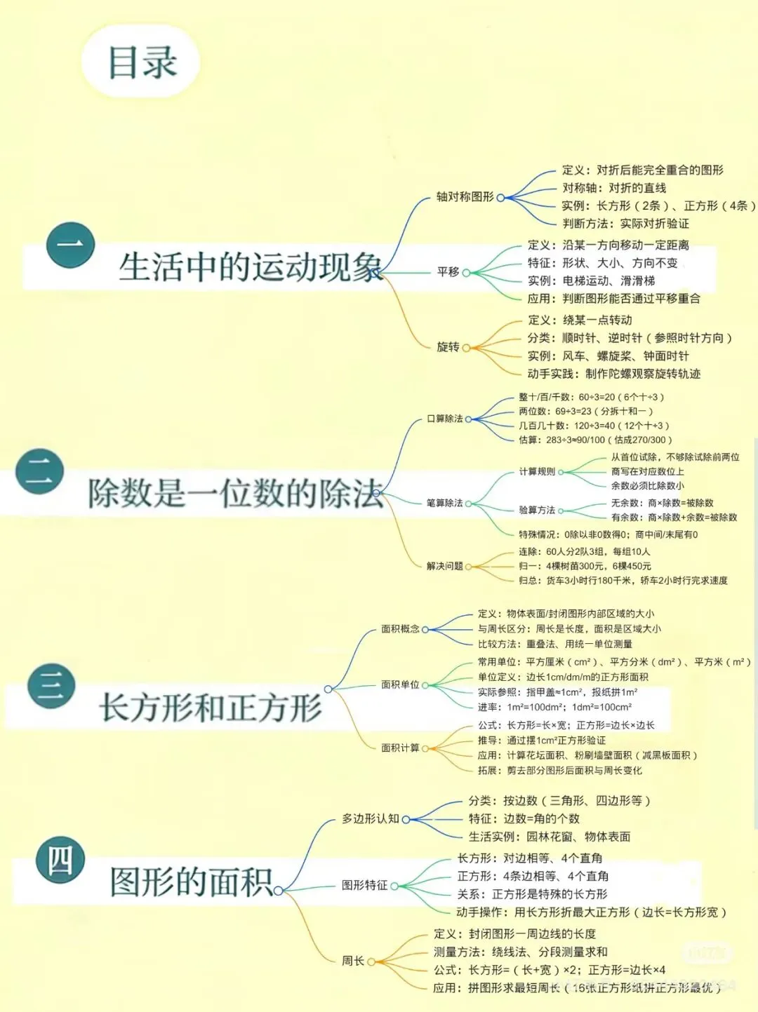 2.探索年、月、日的规律,认识大月、小月、平年、闰年,能准确判断平年与闰年,能结合作息时间表合理规划时间,建立良好的时间量感。1.熟练掌握除数是一位数的口算除法方法,能快速准确地进行口算;掌握笔算除法的计算法则,能正确计算两位数除以一位数,三位数除以一位数的笔算除法,理解笔算除法的算理,养成验算的良好习惯。