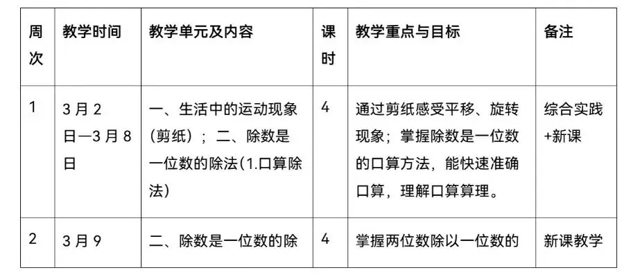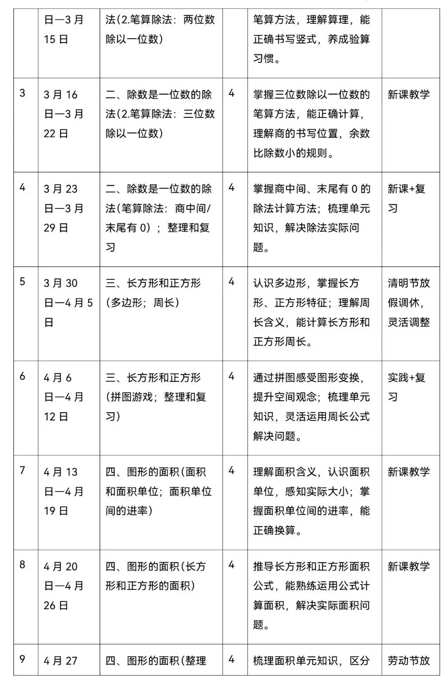 2026春人教版(新教材)小学数学三年级第二学期教学计划及进度表(优化版)