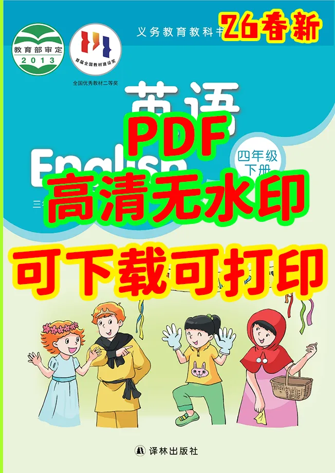 #26年春新小学译林版英语四年级下册电子课本教材pdf高清无水印电子版可打印下载预习复习备考教学学习资料一年级二年级三年级四年级五年级六年级上册下册