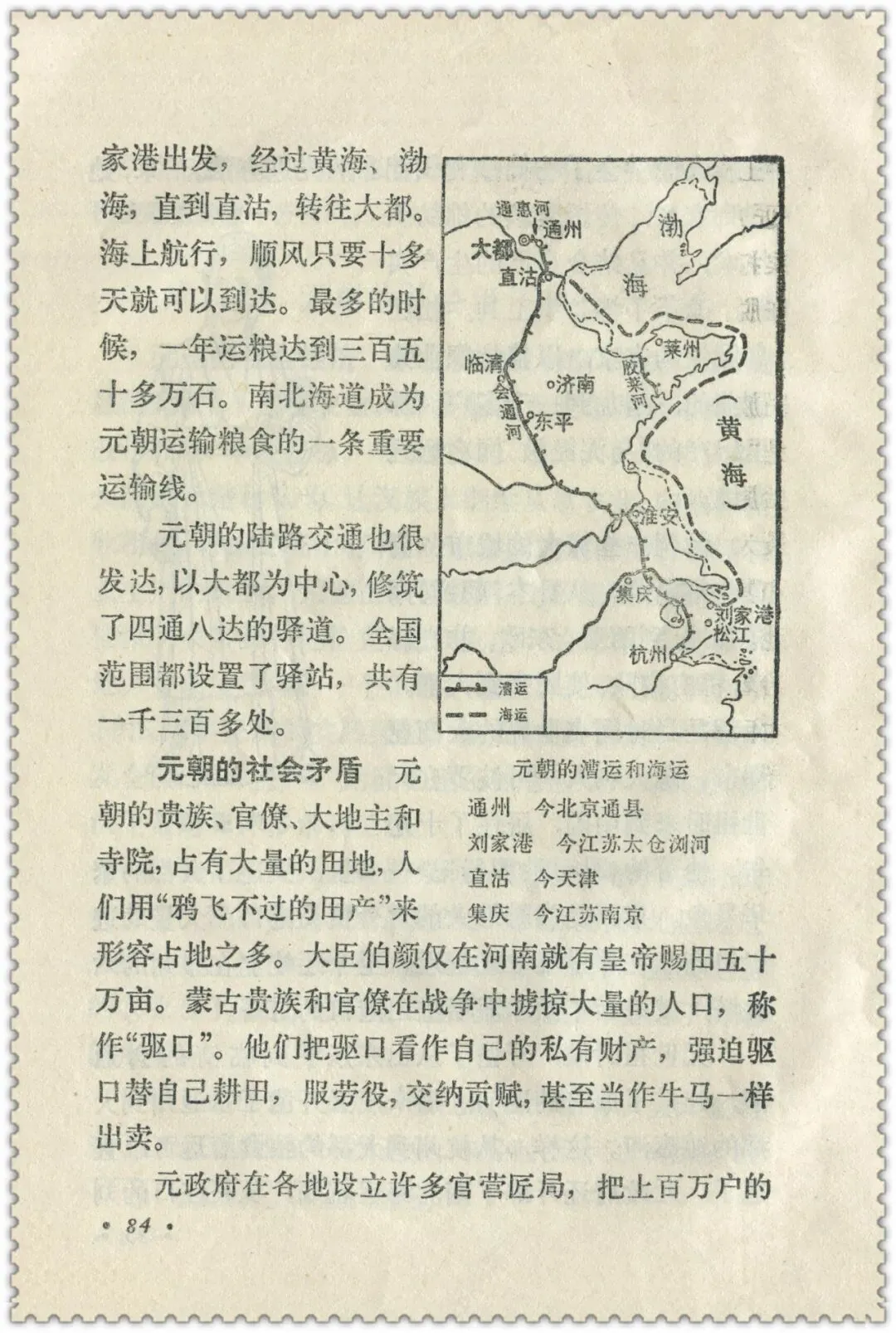 元世祖时候,开凿了从山东东平到临清的会通河,连接了原有的运河。后来,又开凿了从通州到大都的通惠河。这样,从杭州到大都的粮食漕运可以直通了。元政府还开辟了南北海运航线,从长江口的刘家港出发,经过黄海,渤海,直到直沽,转往大都。海上航行,顺风只要十多 天就可以到达。最多的时候,一年运粮达到三百五十多万石。南北海道成为元朝运输粮食的一条重要运输线。