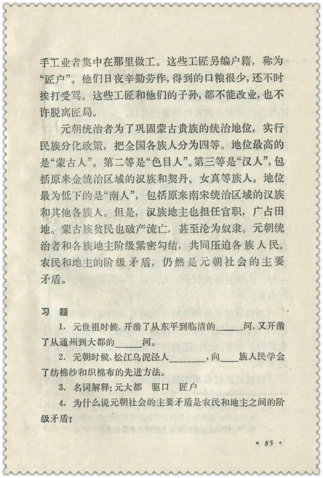 元政府在各地设立许多官营匠局,把上百万户的手工业者集中在那里做工。这些工匠另编户籍,称为"匠户"。他们日夜辛勤劳作,得到的口粮很少,还不时挨打受骂。这些工匠和他们的子孙,都不能改业,也不许脱离匠局。