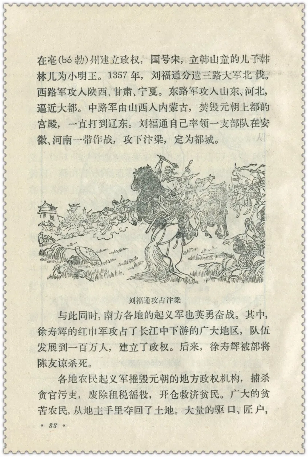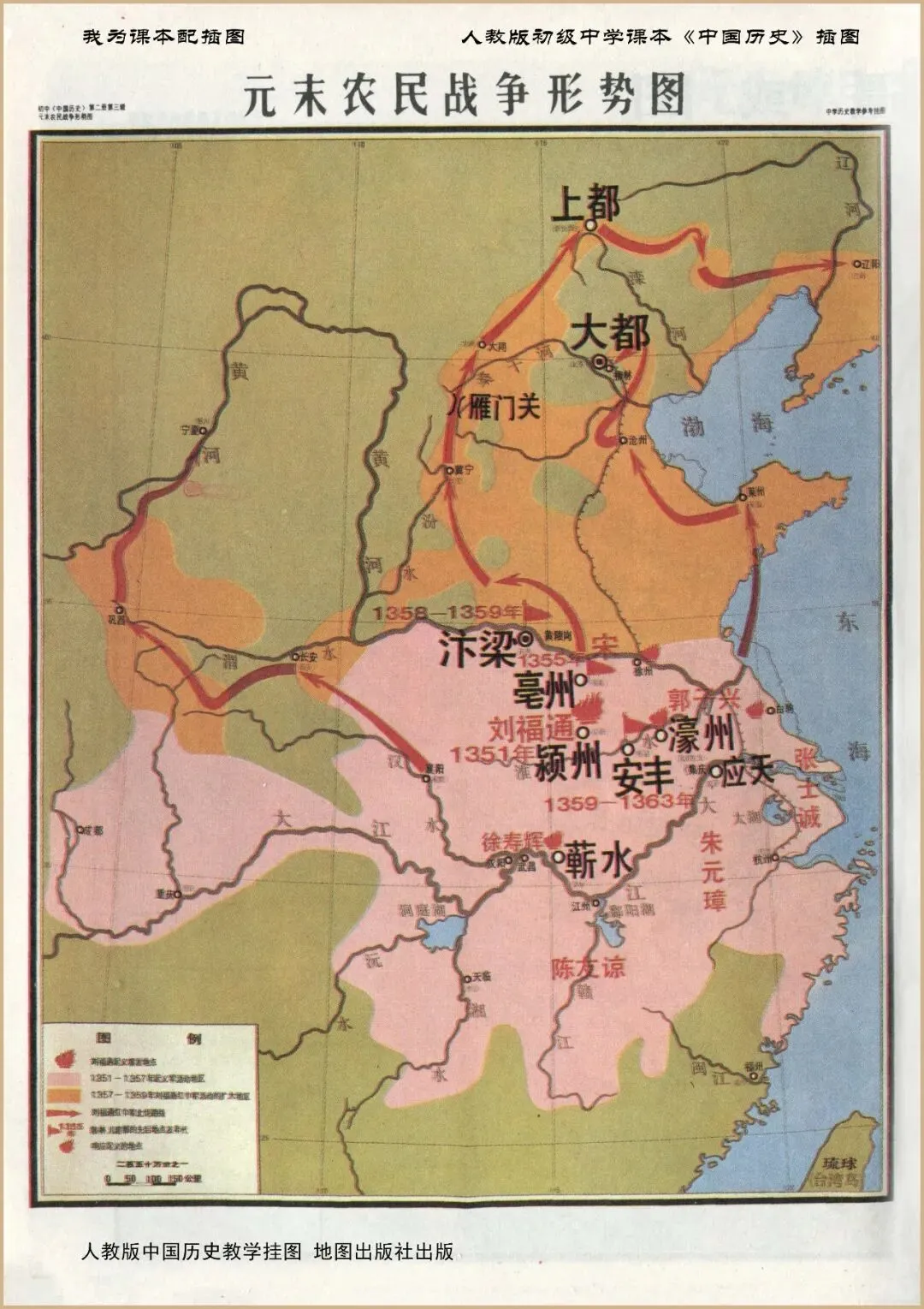 与此同时,南方各地的起义军也英勇奋战。其中,徐寿辉的红巾军攻占了长江中下游的广大地区,队伍发展到一百万人,建立了政权。后来,徐寿辉被部将陈友谅杀死。