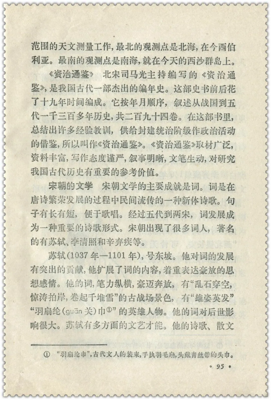 《资治通鉴》北宋司马光主持编写的《资治通鉴》,是我国古代一部杰出的编年史。这部史书前后花了十九年时间编成。它按年月顺序,叙述从战国到五代一千三百多年历史,共二百九十四卷。在这部书里,总结出许多经验教训,供给封建统治阶级作政治活动的借鉴,所以叫作《资治通鉴》。《资治通鉴》取材广泛,资料丰富,写作态度谨严,叙事明晰,文笔生动,对研究我国古代历史有重要的参考价值。
