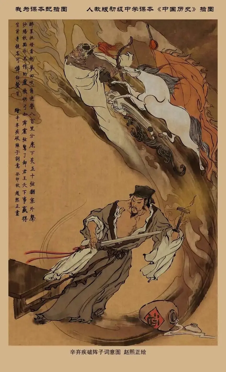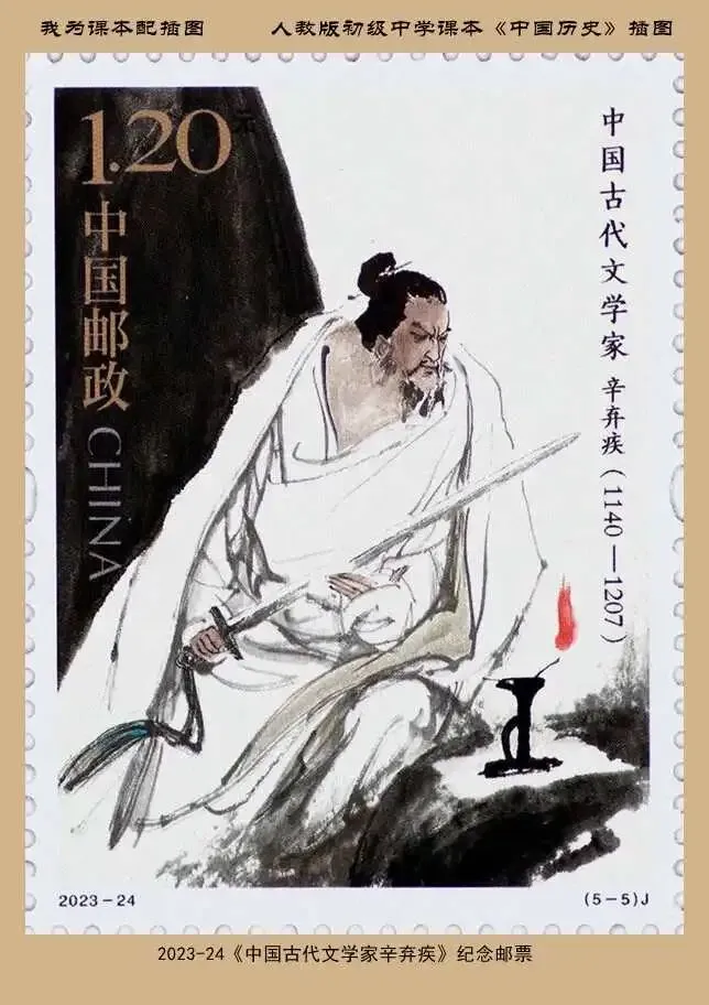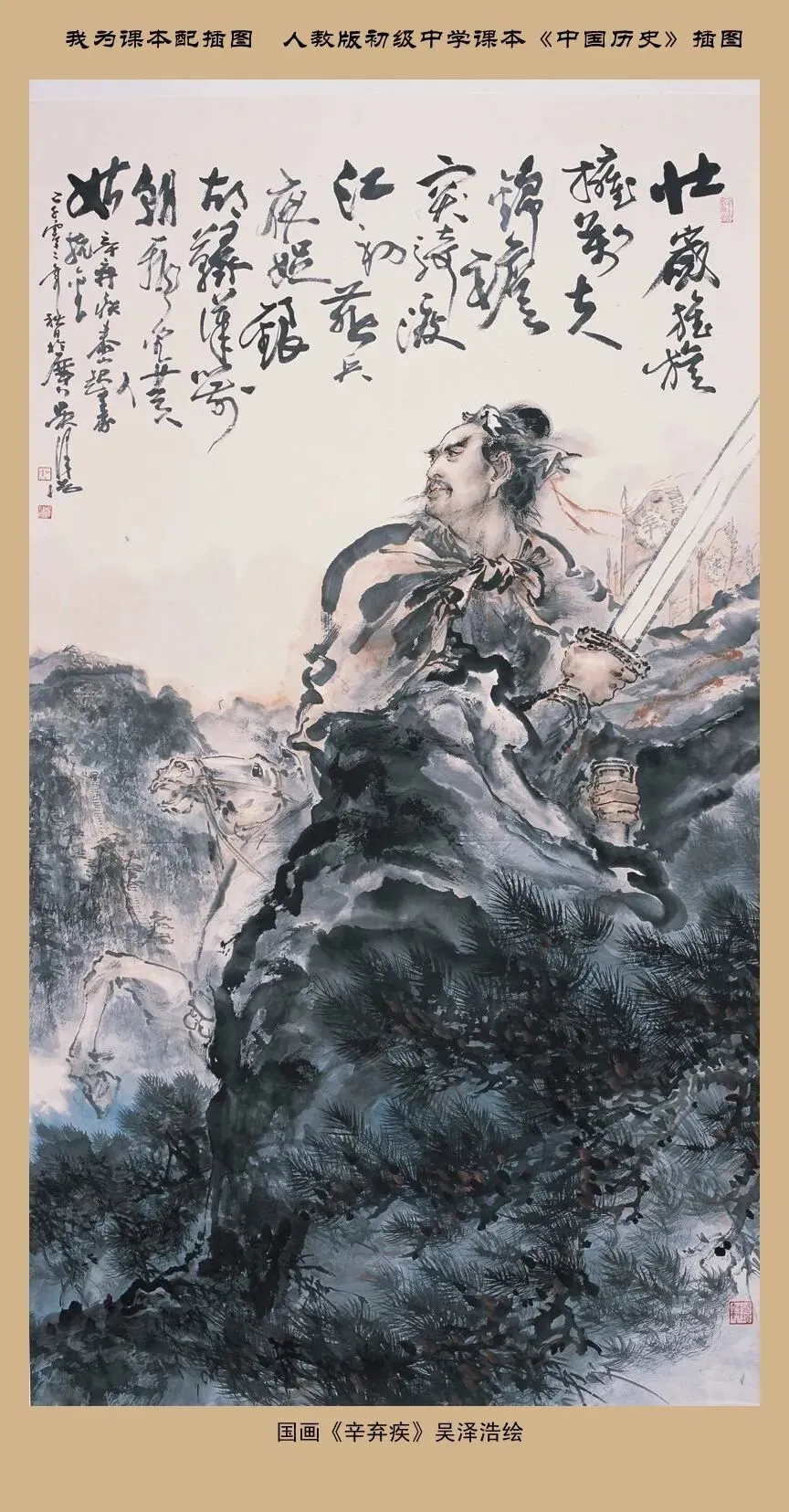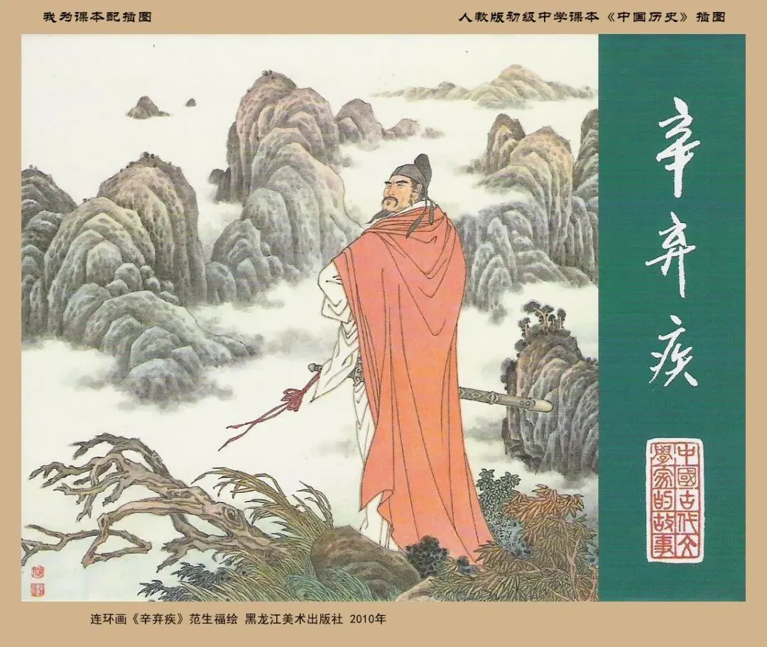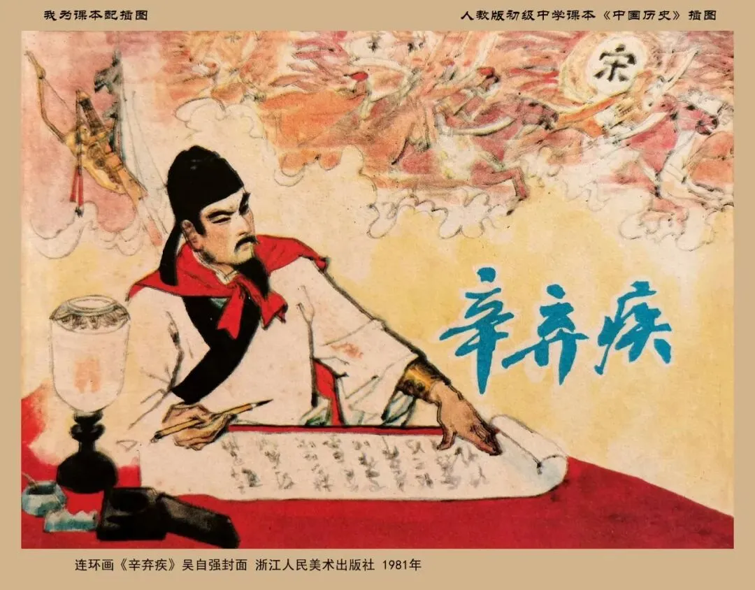 辛弃疾(1140年一1207年),号稼轩。年轻时候,他参加过北方的抗金义军。他的词,充满了恢复中原的壮志和反抗民族压迫的战斗精神。辛弃疾在词里,倾吐对山河分裂的悲痛:"西北望长安,可怜无数山。"他回忆青年时代抗金的豪迈景象:"壮岁旌旗拥万夫,锦襜突骑渡江初"。辛弃疾继苏轼之后,把词的豪放风格加以发扬光大。