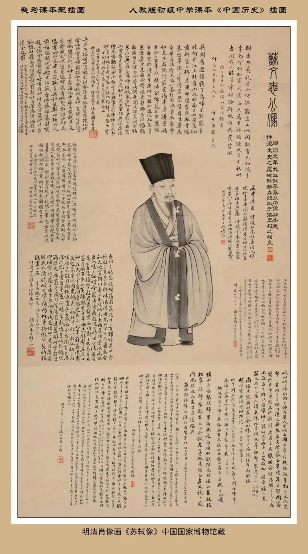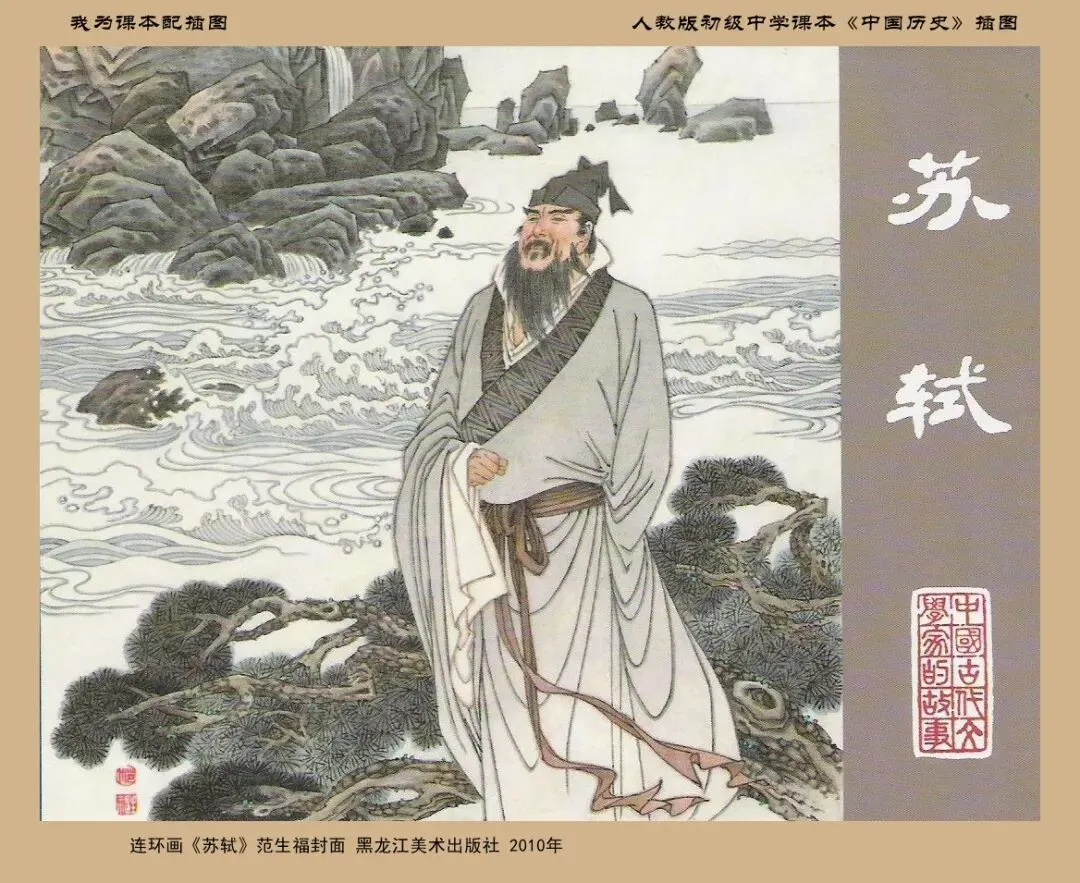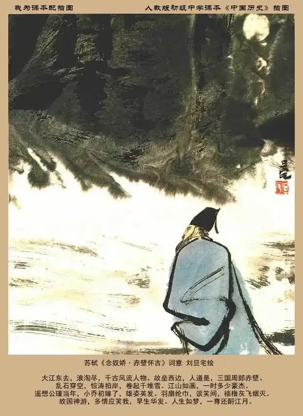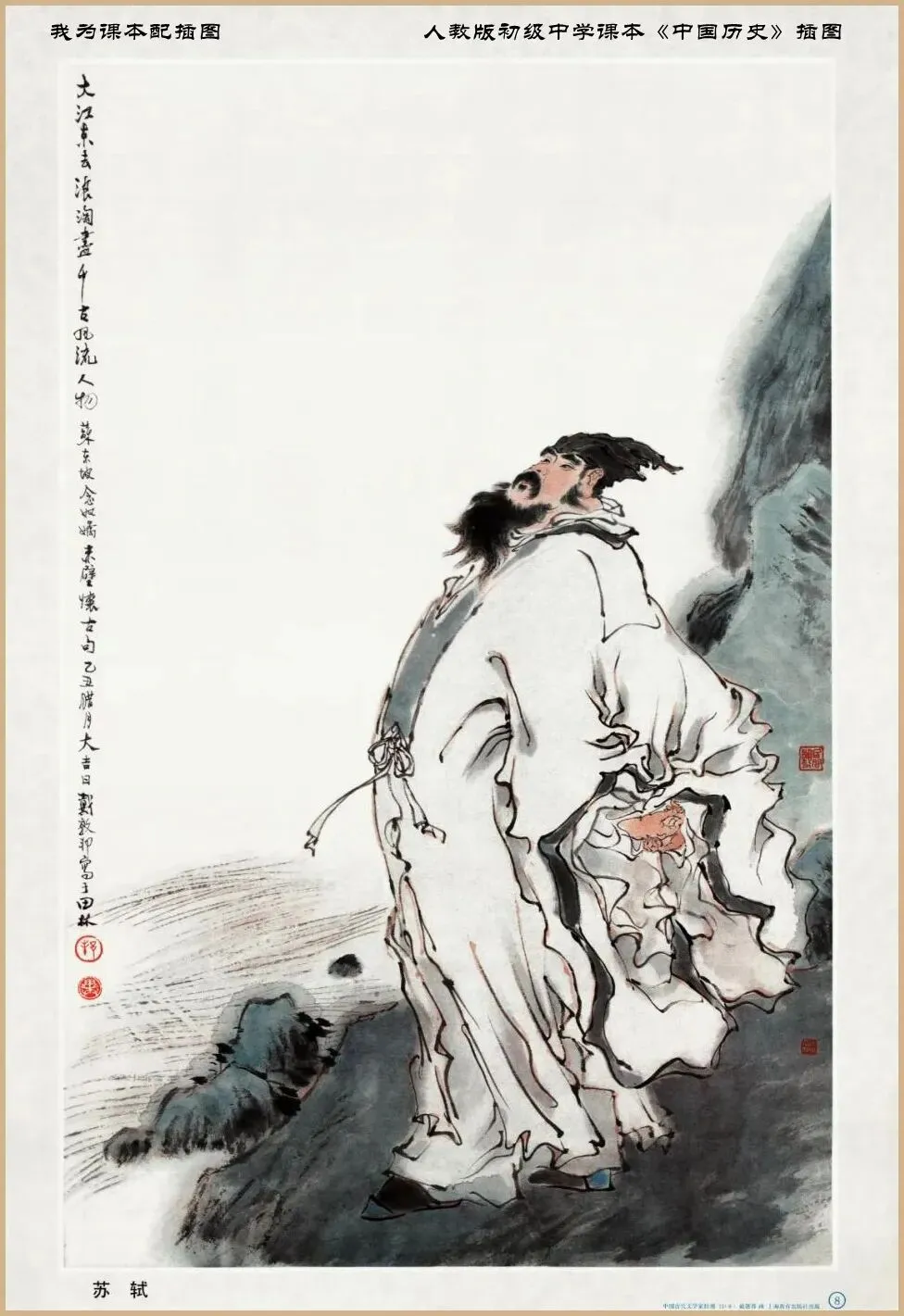 苏轼(1037年—1101年),号东坡。他对词的发展有突出的贡献,他扩展了词的内容,着重表达豪放的思想感情。他的词,笔力纵横,豪迈奔放,有"乱石穿空,惊涛拍岸,卷起千堆雪"的古战场景色,有"雄姿英发""羽扇纶巾"的英雄人物。他的词对后世影响很大。苏轼有多方面的文艺才能。他的诗歌,散文不受文体形式的拘束,独具一格。