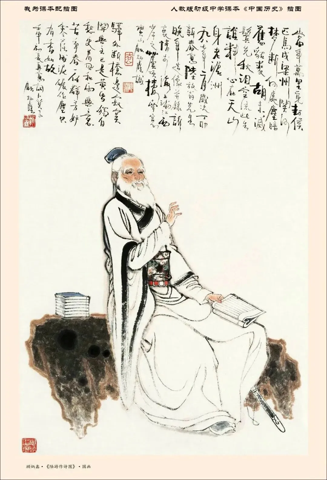 陆游(1125年—1210年),号放翁。他生活在宋,金对峙之际,渴望祖国南北统一,他的名作《示儿》诗,突出地反映了这种思想:"死去原知万事空,但悲不见九州同,王师北定中原日,家祭无忘告乃翁。"他的诗波澜壮阔,感情充沛。陆游的创作力旺盛,保存下来的诗有九千多首,是我国古代作品最多的诗人。