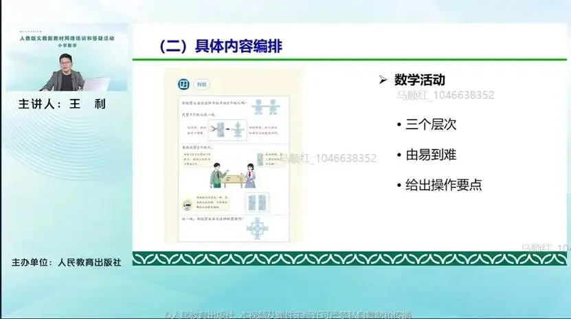 2.教材安排了观察与动手操作活动,如折纸、制作陀螺等,让学生在实践中直观感受图形运动特征,积累数学经验,提升数学思维能力。