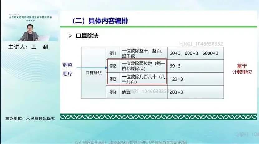 4.口算除法部分通过调整例题顺序,由易到难地引导学生将表内除法经验迁移至一位数除多位数的口算方法学习中,强化口算技巧。