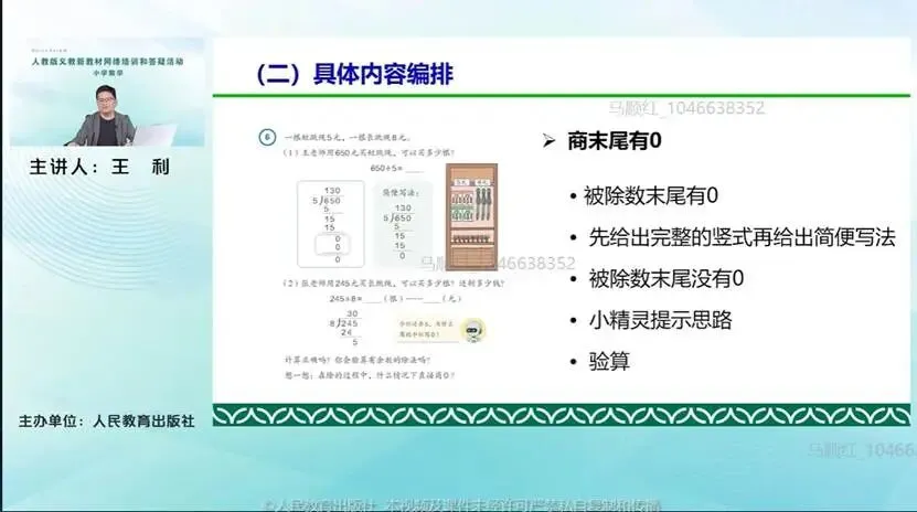 5.创设购买跳绳的情境,专门教学商末尾有零的处理方法,通过两种情况的讨论,解决学生易漏商末尾零的问题,确保学生掌握完整的除法计算技巧。