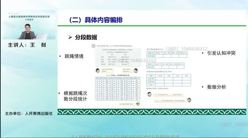 4.数据的收集与整理,通过真实问题出发,体验完整的统计过程,从单式统计表过渡到复式统计表,理解分段整理数据的必要性。
